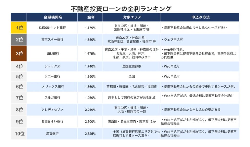 例えば、ソニー銀行もまた金利が低い反面、審査基準がやや厳しめです。あなたの属性や投資計画に合った金融機関を選ぶことが、結果的に最もコストを抑える方法です。