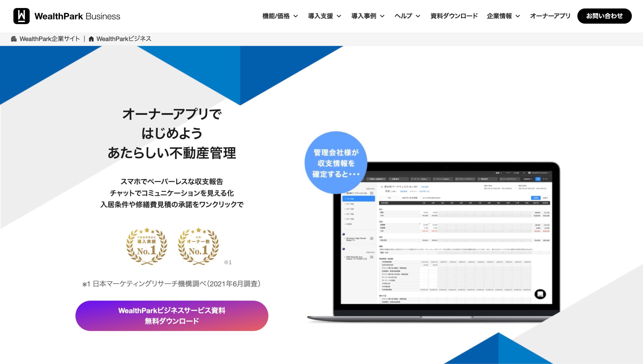 | 物件管理アプリ | Wealth Park対応 | 自社アプリまたは未対応 |