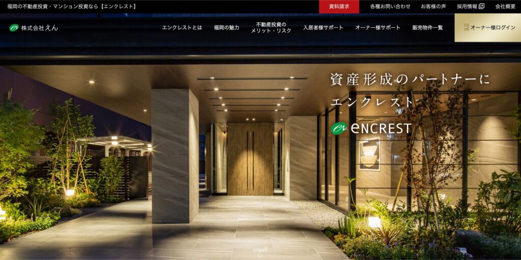 エンクレストは、福岡を拠点とする株式会社えんが展開する投資用マンションブランドです。地域密着型の不動産開発企業として長年にわたり実績を積み重ね、九州エリアでは圧倒的な存在感を示しています。