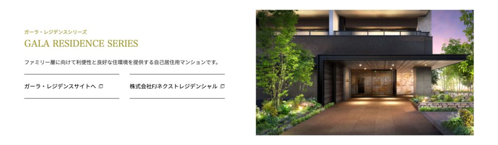 FJネクストのガーラマンションは、シンプルで機能的なデザインが特徴です。派手さはありませんが、幅広い層に受け入れられやすく、長期安定運用に向いています。