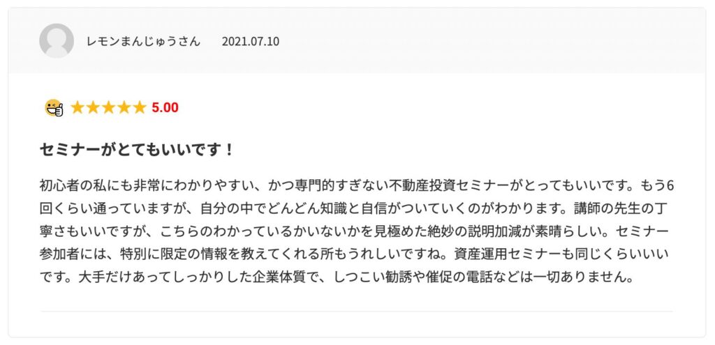 「セミナー参加後、すぐに契約を迫られることはなく、じっくり検討する時間をもらえた」という声もあり、押し売りではない姿勢が評価されているようです。あなた自身のペースで学び、検討できる環境は、後悔しない投資判断につながるでしょう。