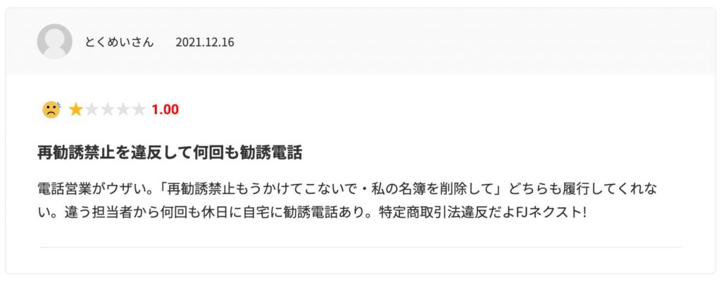 実際に「はっきりと断る意思を伝えたら、その後の連絡は来なくなった」という口コミもあります。営業電話を停止する方法については後述しますが、コミュニケーションの取り方次第で改善できる問題とも言えます。