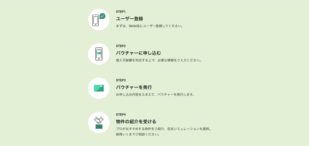 INVASEの大きな特徴の一つが、バウチャー(借入可能額証明書)の発行サービスです。多くの不動産投資仲介サービスでは、物件紹介が先行し、融資の可否は後回しになりがちです。