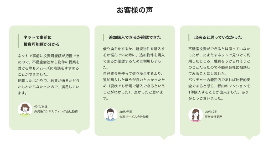 しかしバウチャーを取得しておけば、自分の融資枠内で現実的な物件を選定できるため、投資計画がスムーズに進みます。