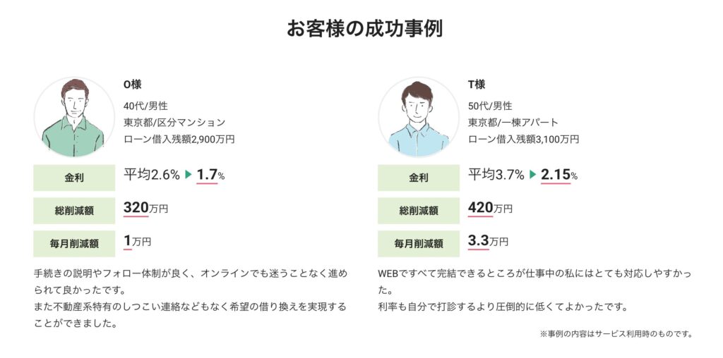 金利が1%下がるだけでも、数千万円の融資では月々の返済額が数万円単位で変わります。長期的に見れば、総返済額で数百万円の差が生まれることも珍しくありません。このような具体的な成果が出ている点は、サービスの実効性を裏付けています。