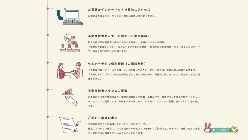 20年以上の事業継続と明確な物件戦略により、投資初心者にも理解しやすく、リスクを抑えた投資環境を提供しています。