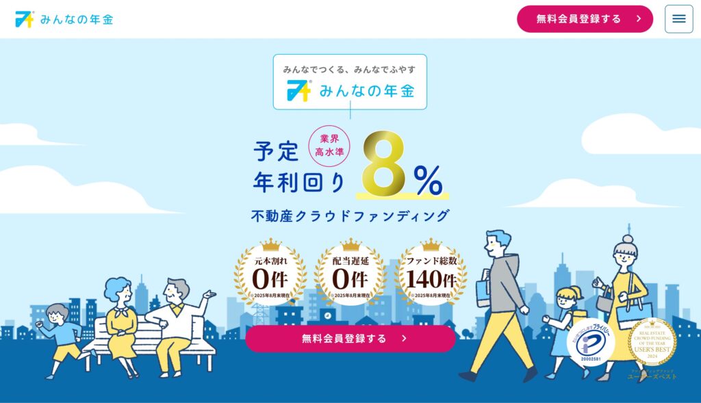 最低1万円から投資可能で、Webで全ての手続きが完結できる手軽さが特徴です。累計調達額は877億円を超える実績を誇り、過去に元本割れ0件という安定した運用成績を維持しています。
