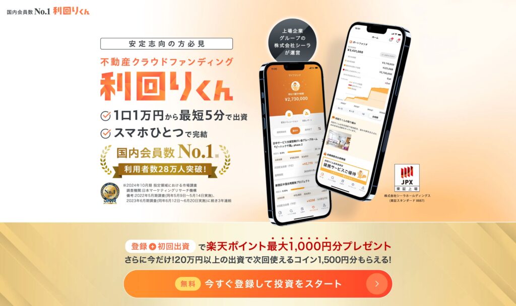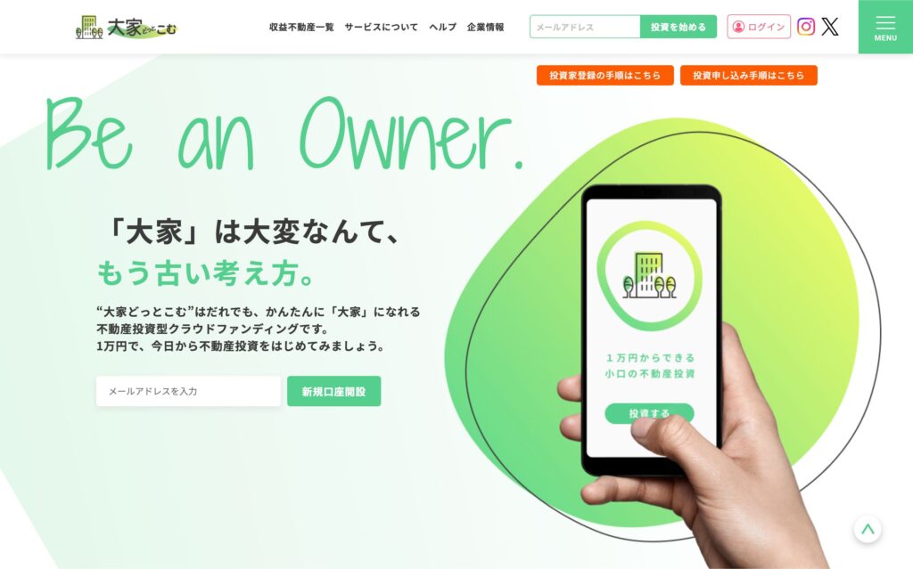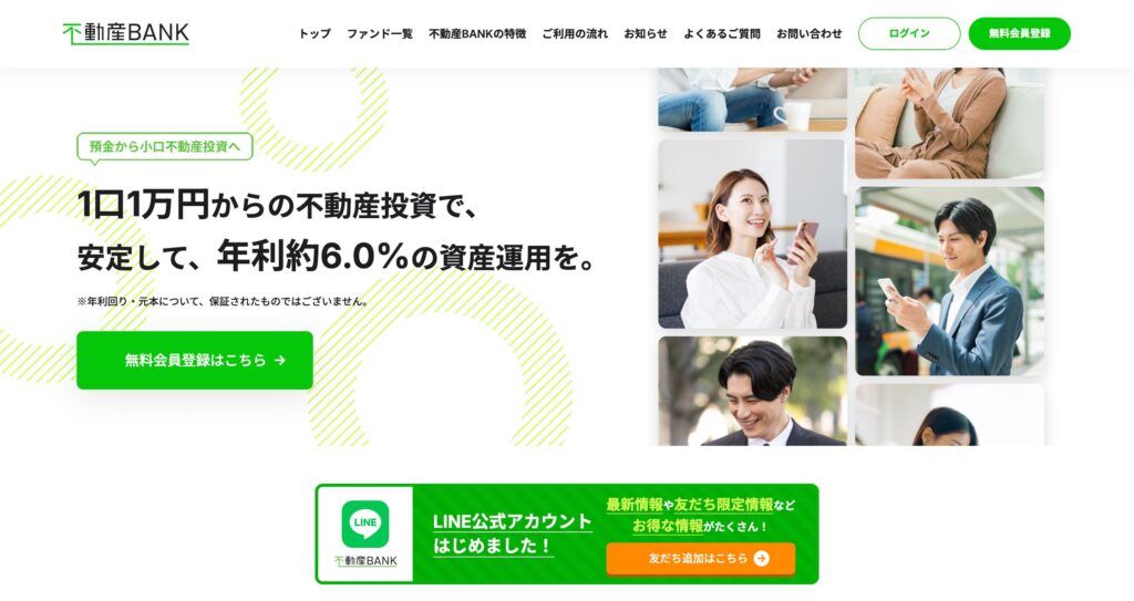 - 少額から始められる投資環境:最低投資額が1万円からと低く設定されており、まとまった資金がない初心者でも気軽に不動産投資を始められる。