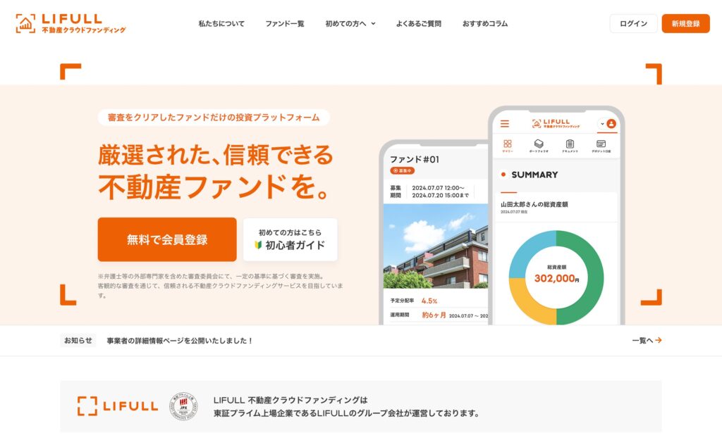 - 豊富な実績と安定性:累計調達額877億円、過去に元本割れ0件という実績により、安定した運用実績が証明されており、投資家に安心感を提供。