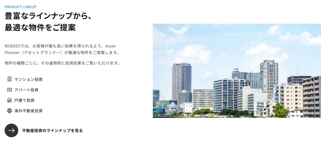 しかしRENOSYでは、これらすべてのプロセスをワンストップで提供することで、初心者でも効率的に不動産投資を始められる環境を整えています。