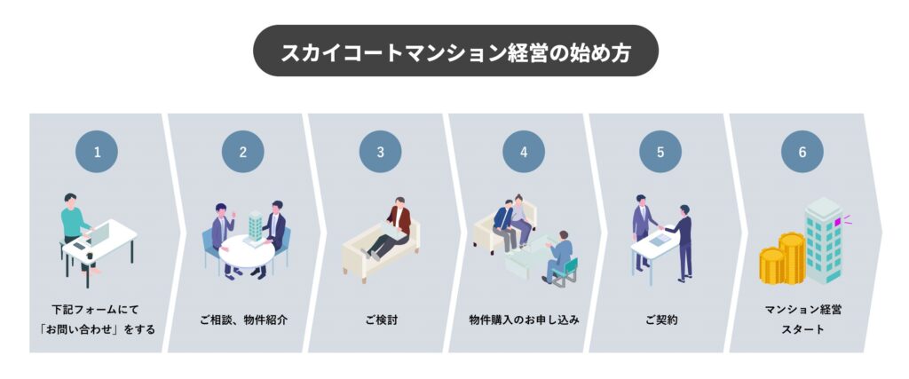 実際にスカイコートで不動産投資を始める場合、どのようなステップを踏むことになるのでしょうか?ここでは、一般的な流れを順を追って解説します。
