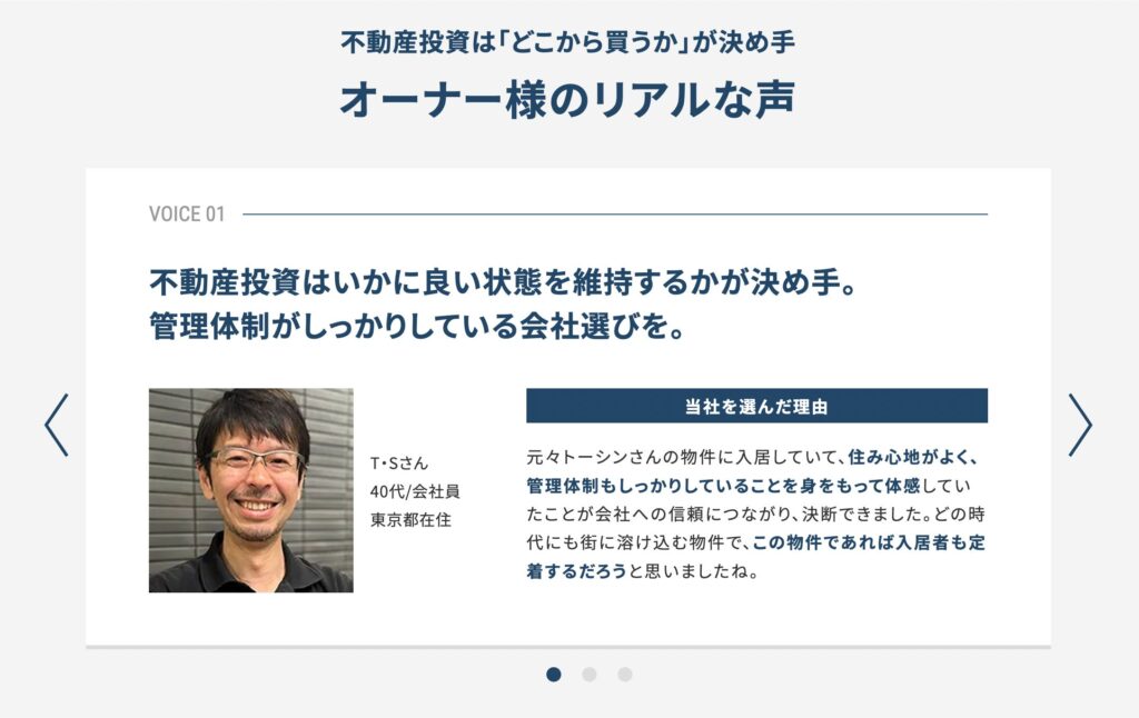 実際にトーシンパートナーズで物件を購入したオーナーからは、どのような評価が寄せられているのでしょうか。ここでは、ポジティブな口コミを中心に、その背景と真実性を検証していきます。