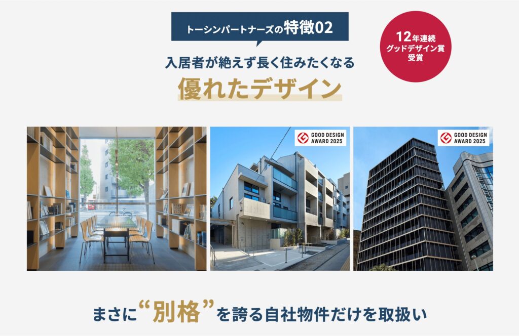 投資用不動産でありながら、デザイン性や住み心地の良さが評価されている点も、トーシンパートナーズの特徴です。