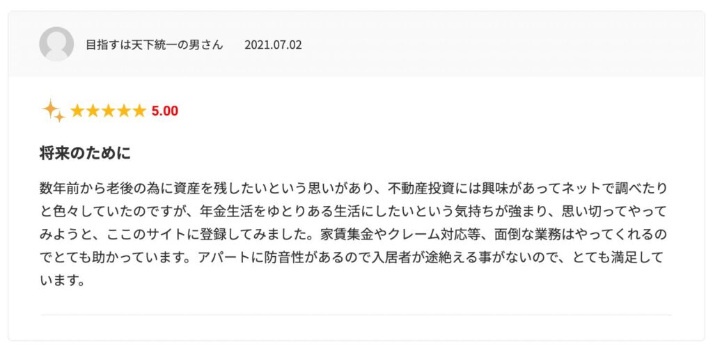 特に興味深いのは、「以前トーシンパートナーズの物件に入居していて、住み心地が良かったのでオーナーになった」という口コミです。