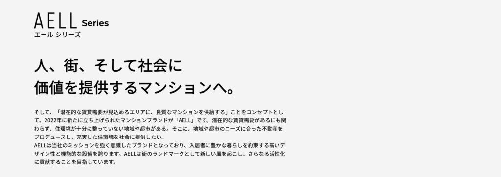 - AELLシリーズ:新興エリアや潜在需要のあるエリアに特化した挑戦的なブランド。将来的な価値上昇を狙いたい投資家向けです。