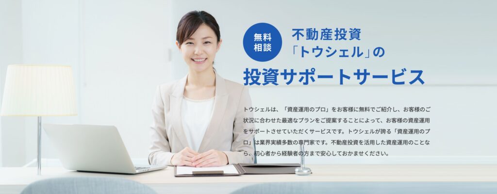 トウシェルは、不動産投資を検討している方と、信頼できる不動産投資会社をマッチングする「紹介特化型」のサービスです。
